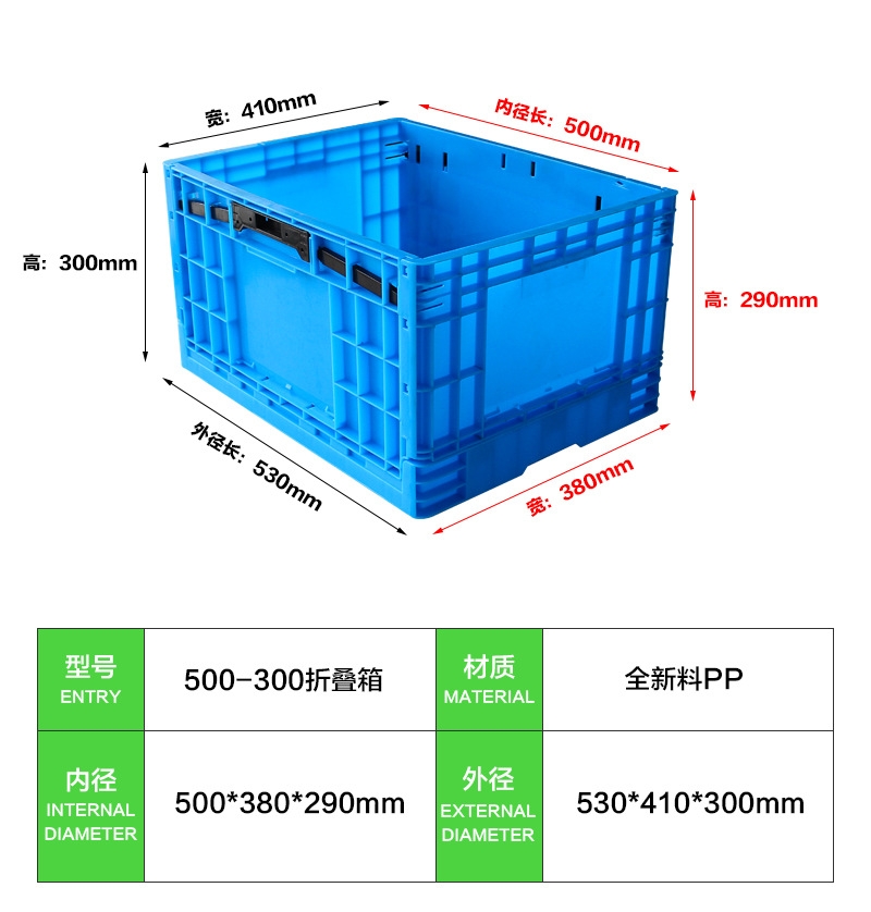 500-300 塑料周转箱塑料折叠箱折叠箱塑料包装箱 塑料折叠卡板箱-上海辉派工业设备有限公司发布日期:2019-8-29