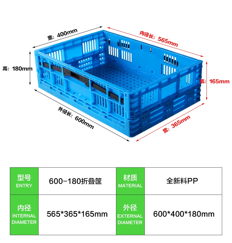 600-180塑料周转箱塑料折叠箱折叠箱塑料包装箱 塑料折叠卡板箱